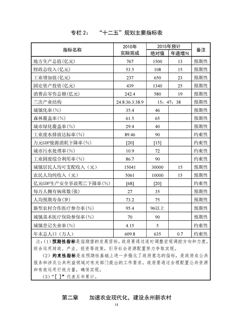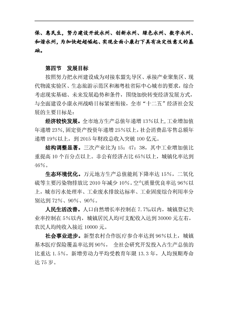 永州市國民經濟和社會發展第十二個五年規劃綱要