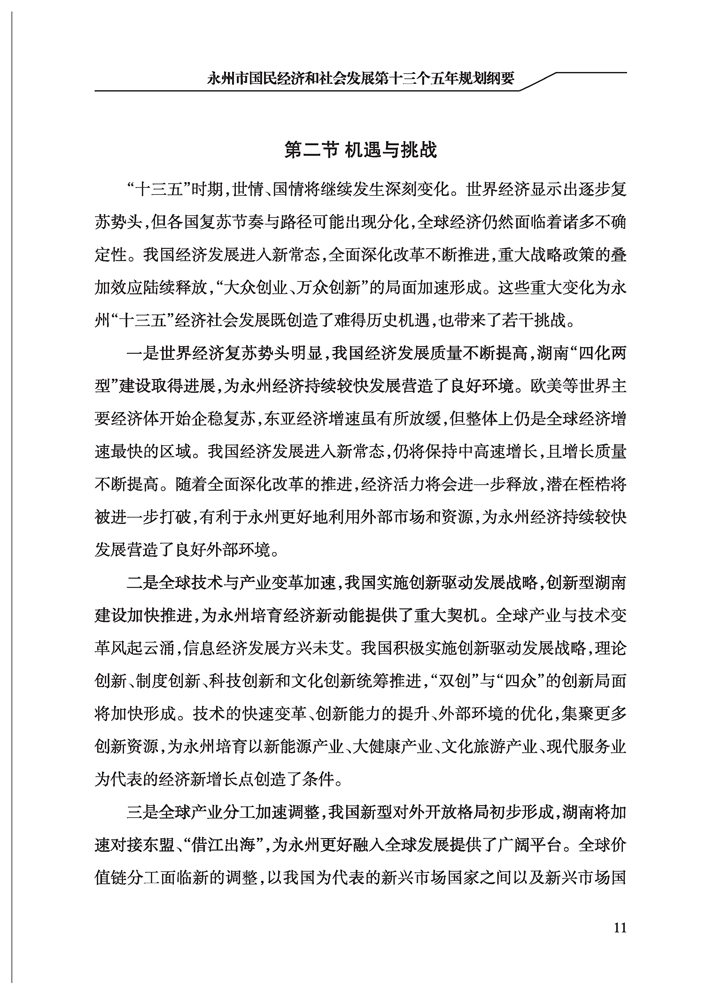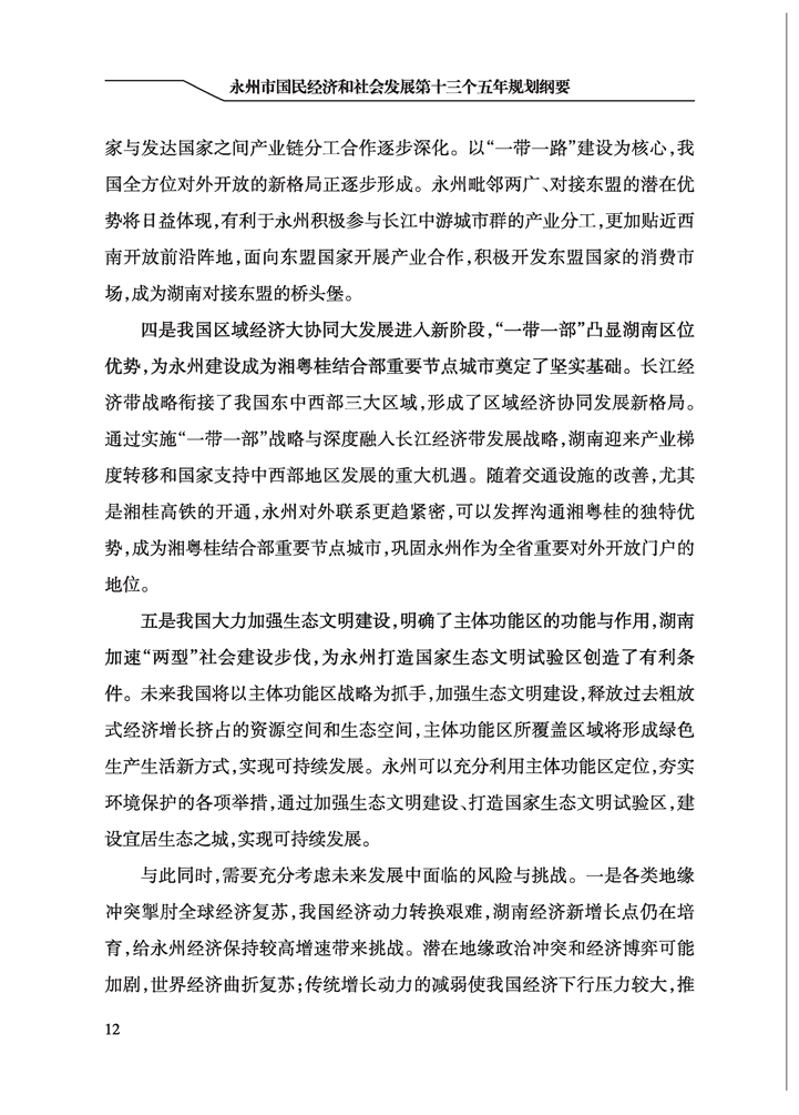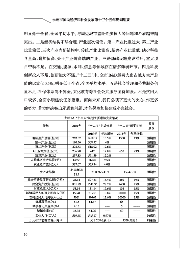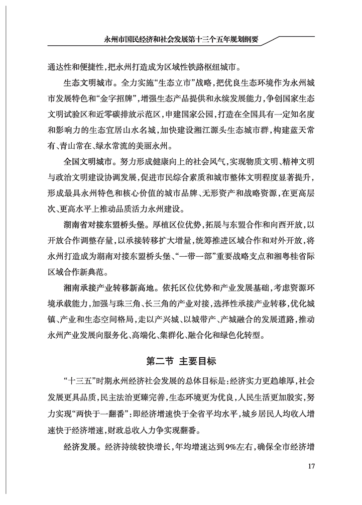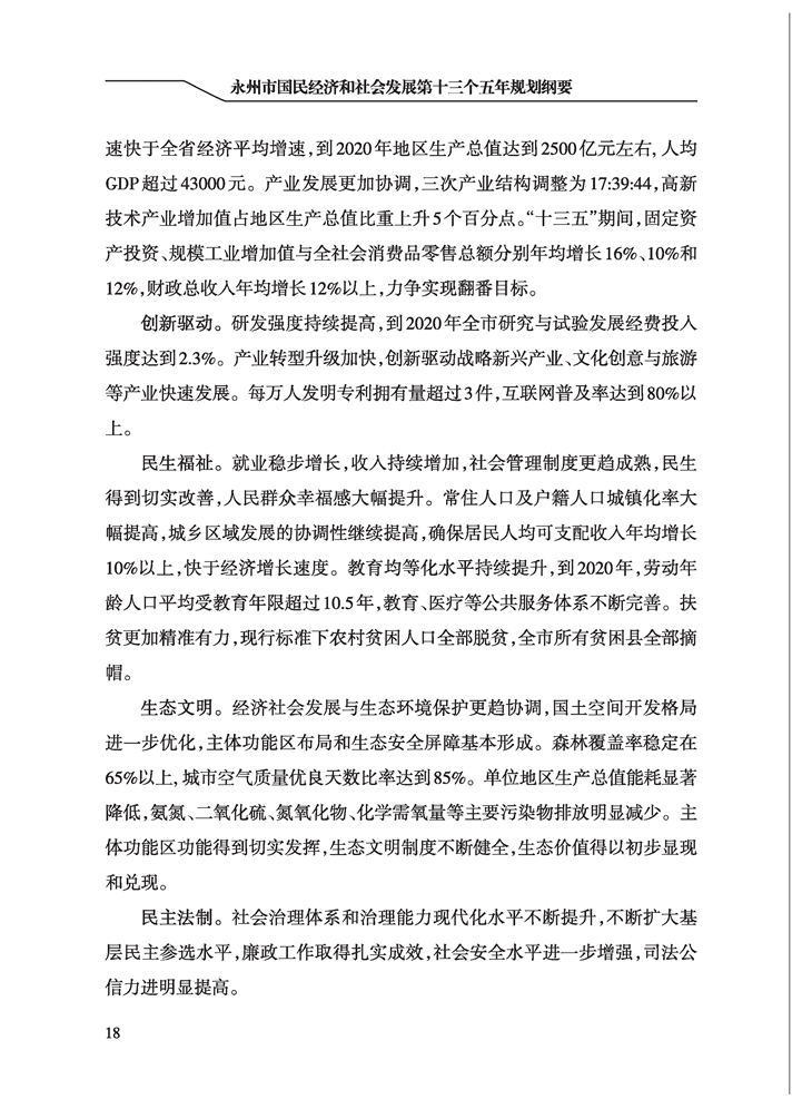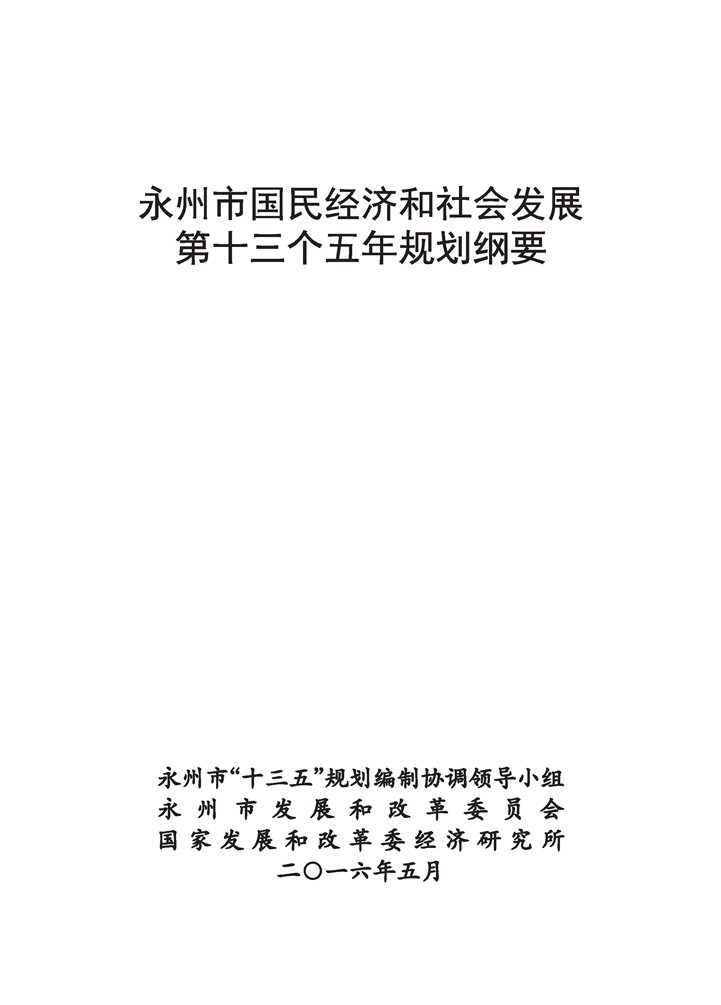 永州市國民經濟和社會發展第十三個五年規劃綱要