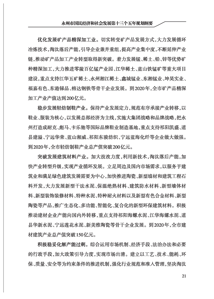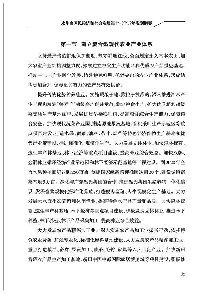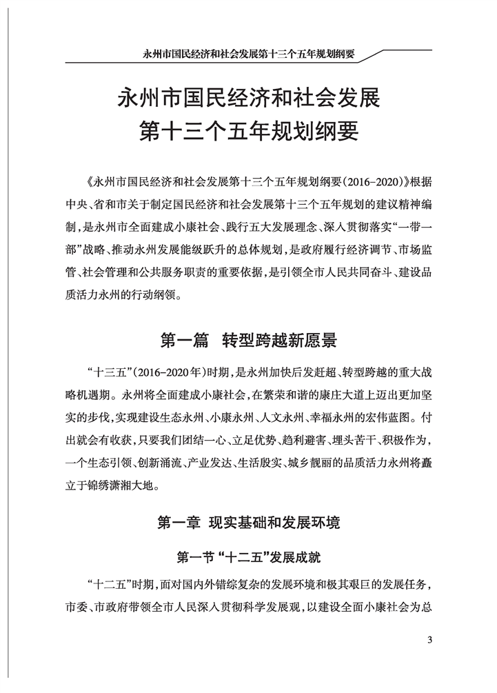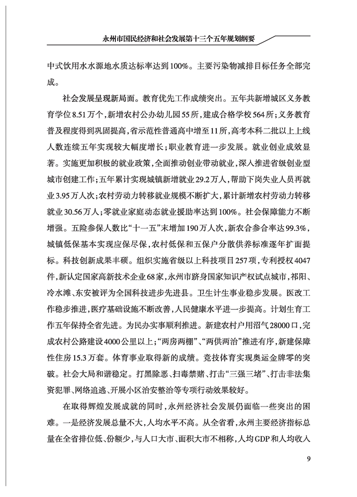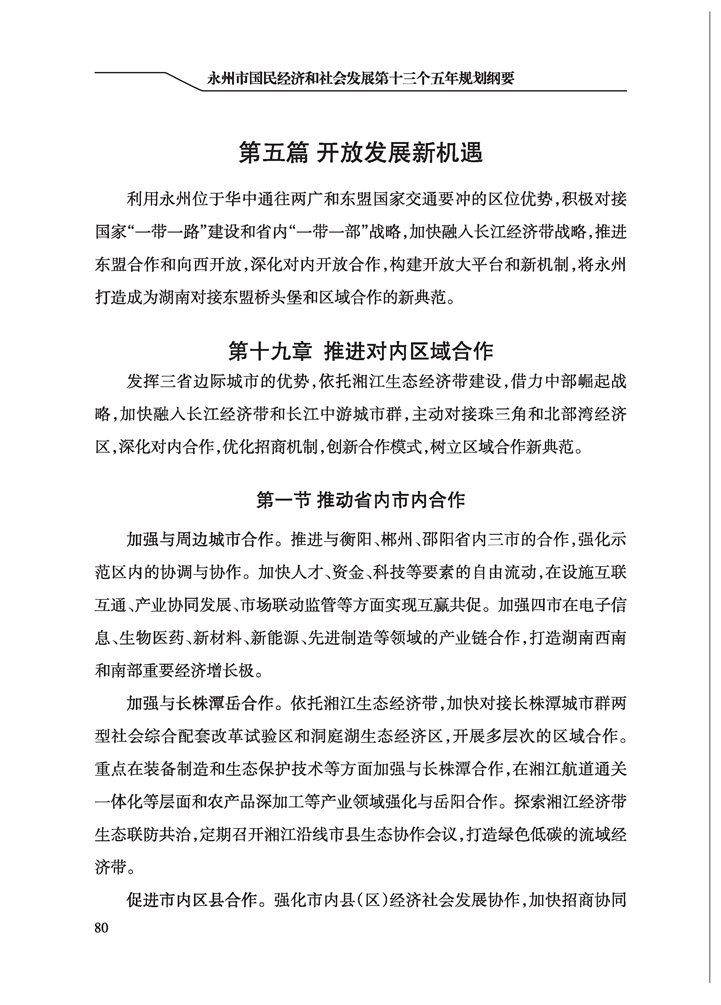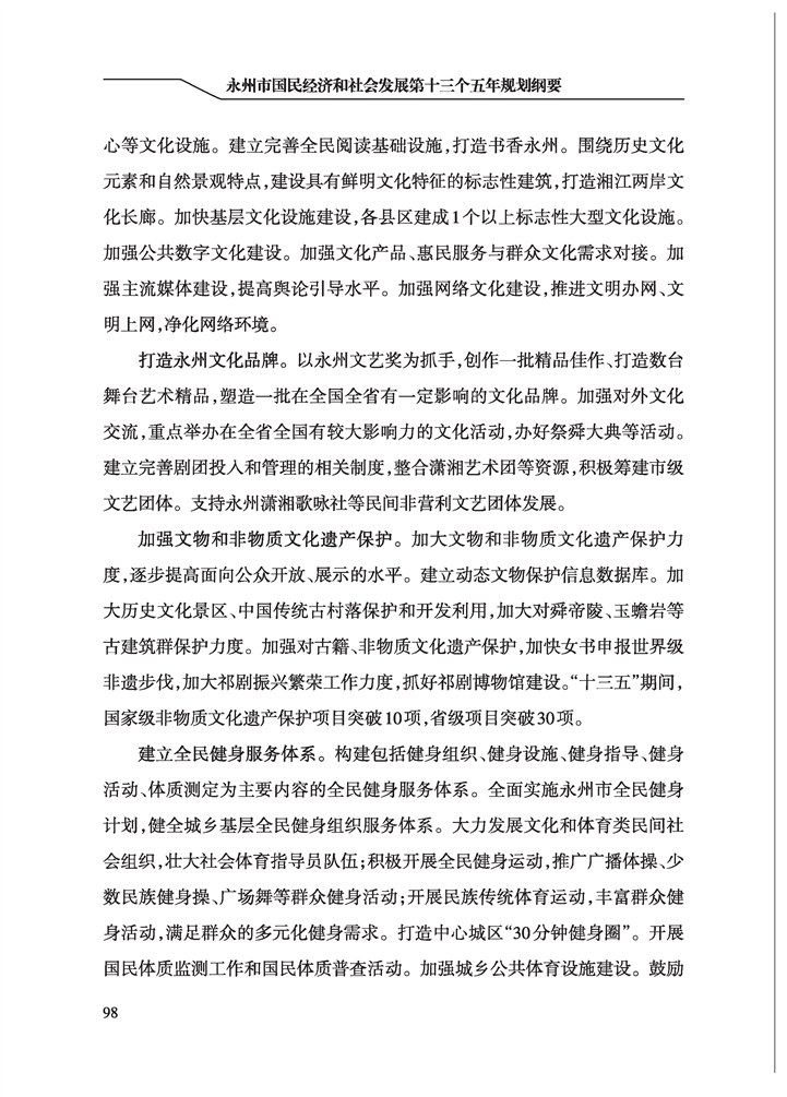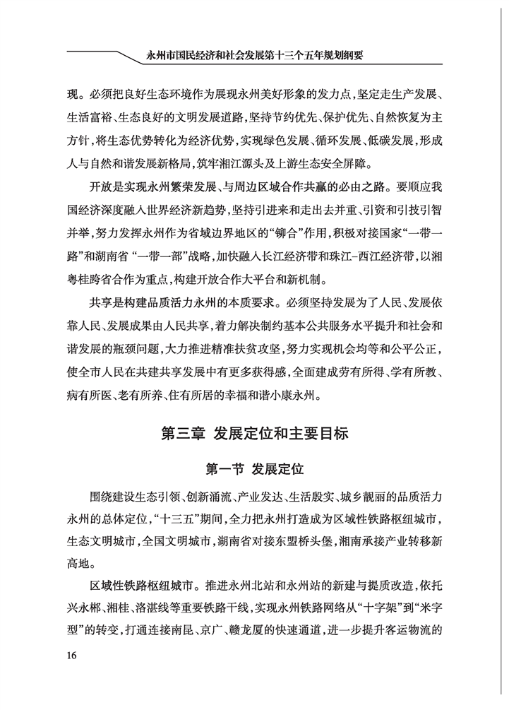 永州市國民經濟和社會發展第十三個五年規劃綱要