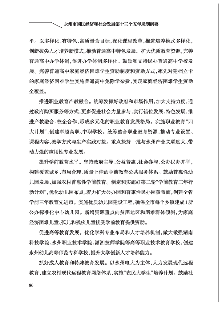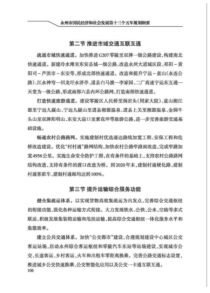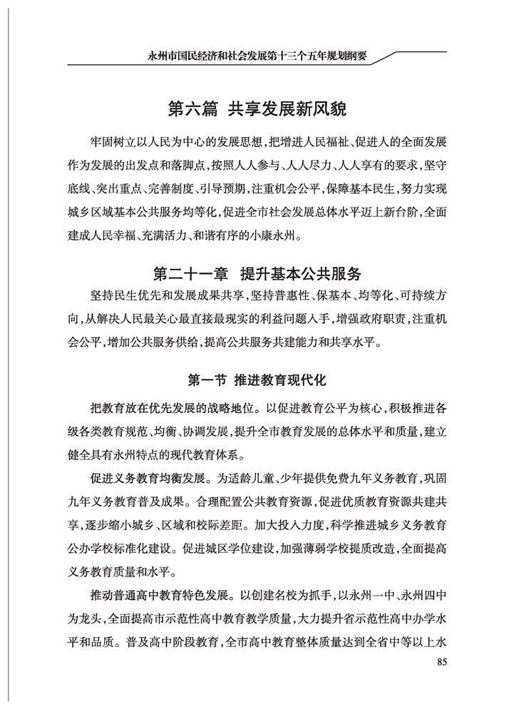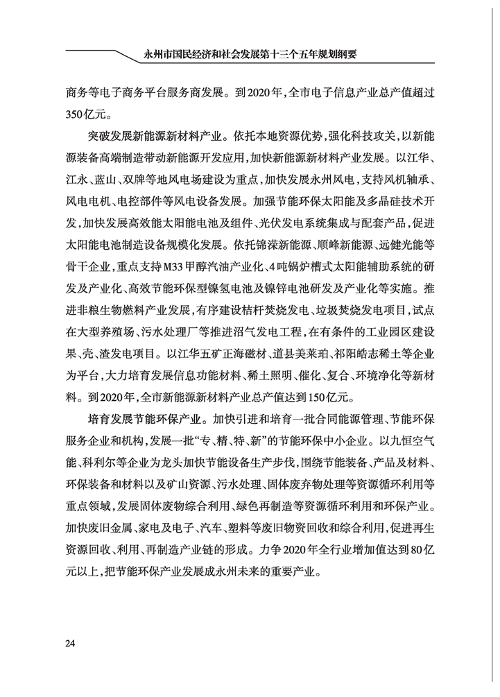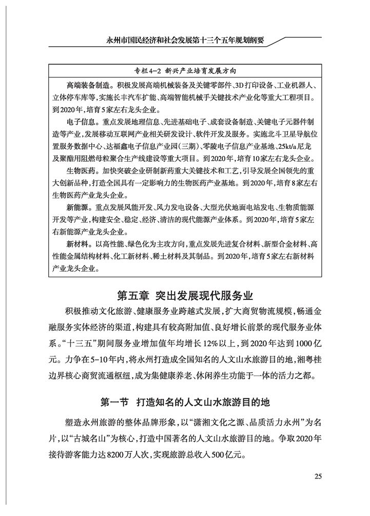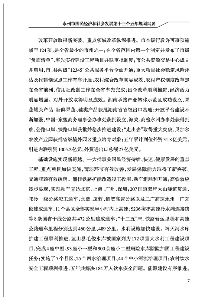 永州市國民經濟和社會發展第十三個五年規劃綱要