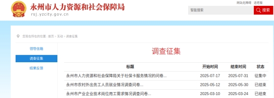 今年以來,永州市人社局已相繼開展產業企業技術崗位用工需求情況、農村外出務工人員就業情況、社保卡服務等三個主題調查征集活動。這些活動豐富了政務公開內涵,密切了與群眾的互動交流,有效推進了政務公開常態化、長效化建設。