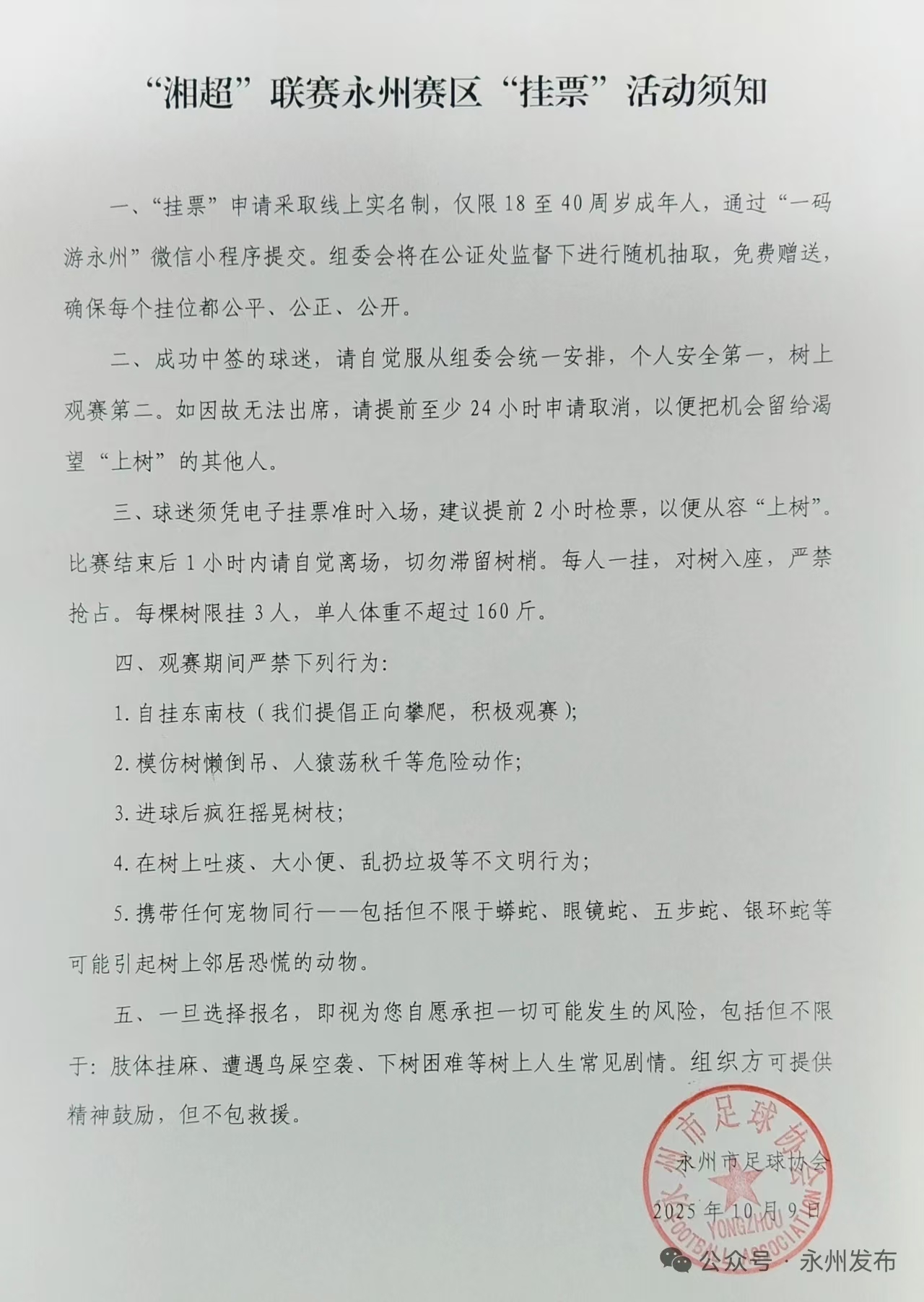 “湘超”永州賽區(qū)“掛票”活動(dòng)須知