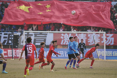 下半場易邊再戰(zhàn),比賽進(jìn)入白熱化階段。婁底隊(duì)率先發(fā)力,加強(qiáng)攻勢,第65分鐘,婁底隊(duì)攻入一球,1:0打破僵局。永州隊(duì)迅速做出戰(zhàn)術(shù)調(diào)整,全隊(duì)將士士氣高昂,發(fā)起猛烈反撲。第77分鐘,永州隊(duì)獲得角球機(jī)會(huì),27號(hào)球員張濤以一記精彩絕倫的倒掛金鉤,將球抽向球門死角,比分被扳為1:1。此后,雙方加大進(jìn)攻力度,試圖在常規(guī)時(shí)間內(nèi)鎖定勝局,最終卻未能改寫比分。90分鐘常規(guī)時(shí)間結(jié)束,比分定格在1:1,比賽進(jìn)入點(diǎn)球大戰(zhàn)。點(diǎn)球大戰(zhàn)中,永州隊(duì)門將唐嘉年挺身而出,撲出婁底隊(duì)兩粒點(diǎn)球,以4:3的點(diǎn)球比分戰(zhàn)勝對(duì)手。最終,永州隊(duì)以總比分5:4力克婁底隊(duì),成功晉級(jí)湘超半決賽。