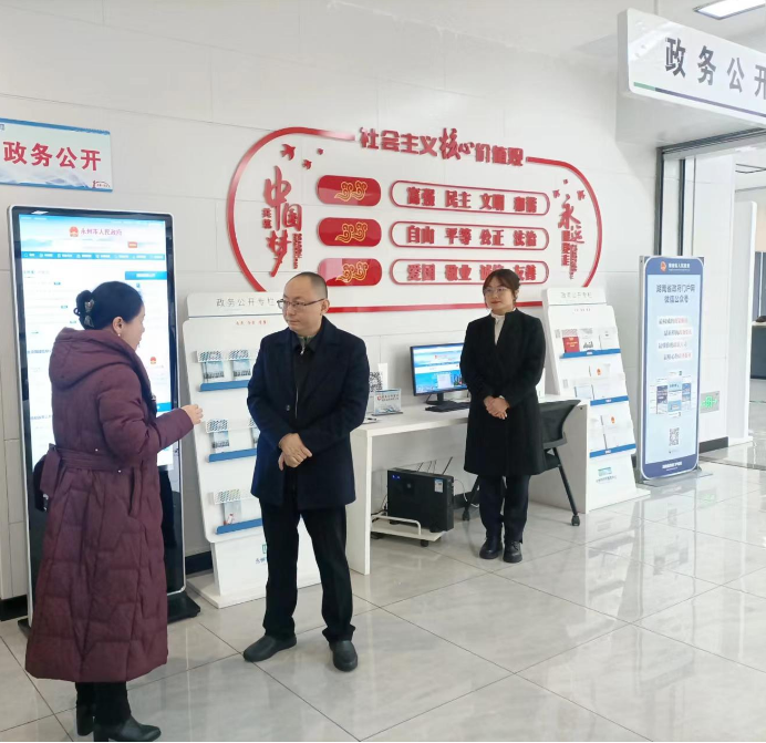 李欽一行先后現場考察了市政務服務中心辦事大廳的“湘易辦”線下體驗中心,稅務、市場監管、人社、政務公開專區、住房公積金、工程建設領域審批等窗口, 以及12345熱線接線大廳。與工作人員親切交談,詳細了解大廳基本情況、辦事流程、便民措施和政務公開等相關情況。