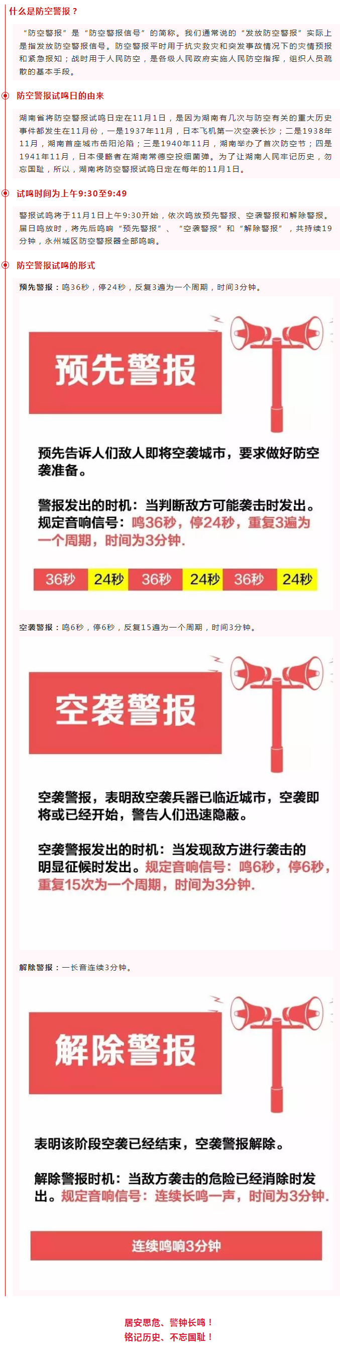 永州市國防動員辦公室關于開展防空警報試鳴活動的溫馨提醒