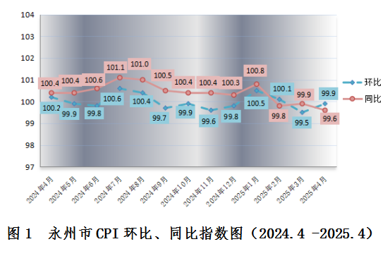 2025年4月份,食品供應(yīng)總體充足,永州居民消費價格(CPI)同比價格下跌0.4%,環(huán)比價格下跌0.1%。