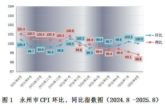 2025年8月份,食品供應(yīng)總體充足,永州居民消費(fèi)價格(CPI)同比價格下跌1.2%,環(huán)比價格持平。