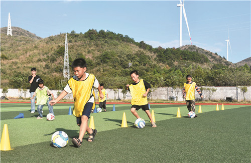 10月10日,江永縣松柏瑤族鄉(xiāng)黃甲嶺學(xué)校的小學(xué)生們在足球場上進行足球技能訓(xùn)練。近年來,該縣推動校園體育活動“加時”“加量”,通過豐富體育課程、成立體育興趣小組和社團等舉措,激發(fā)學(xué)生參與體育鍛煉的熱情。 田如瑞 攝