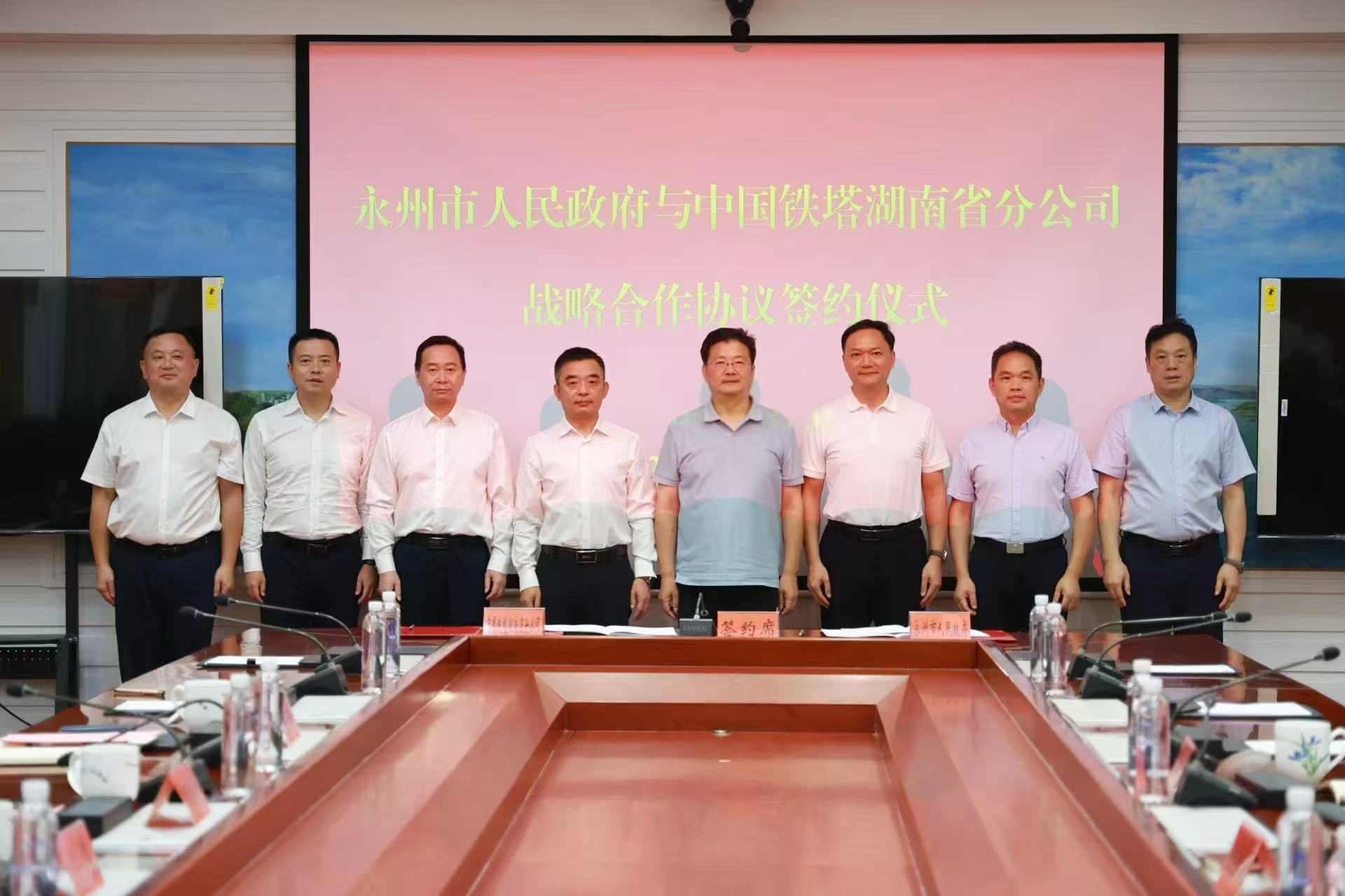 今日永州訊(記者 李弘毅 雷靖)10月14日下午,永州市人民政府與中國鐵塔湖南省分公司簽訂戰(zhàn)略合作協(xié)議。市委副書記、市長陳愛林,中國鐵塔湖南省分公司黨委書記、總經(jīng)理羅昊出席并致辭。市委常委、副市長肖揚(yáng),中國鐵塔湖南省分公司副總經(jīng)理李榮彬代表雙方簽約。市政協(xié)副主席、市工信局局長方智毅,市政府秘書長齊愛社參加。