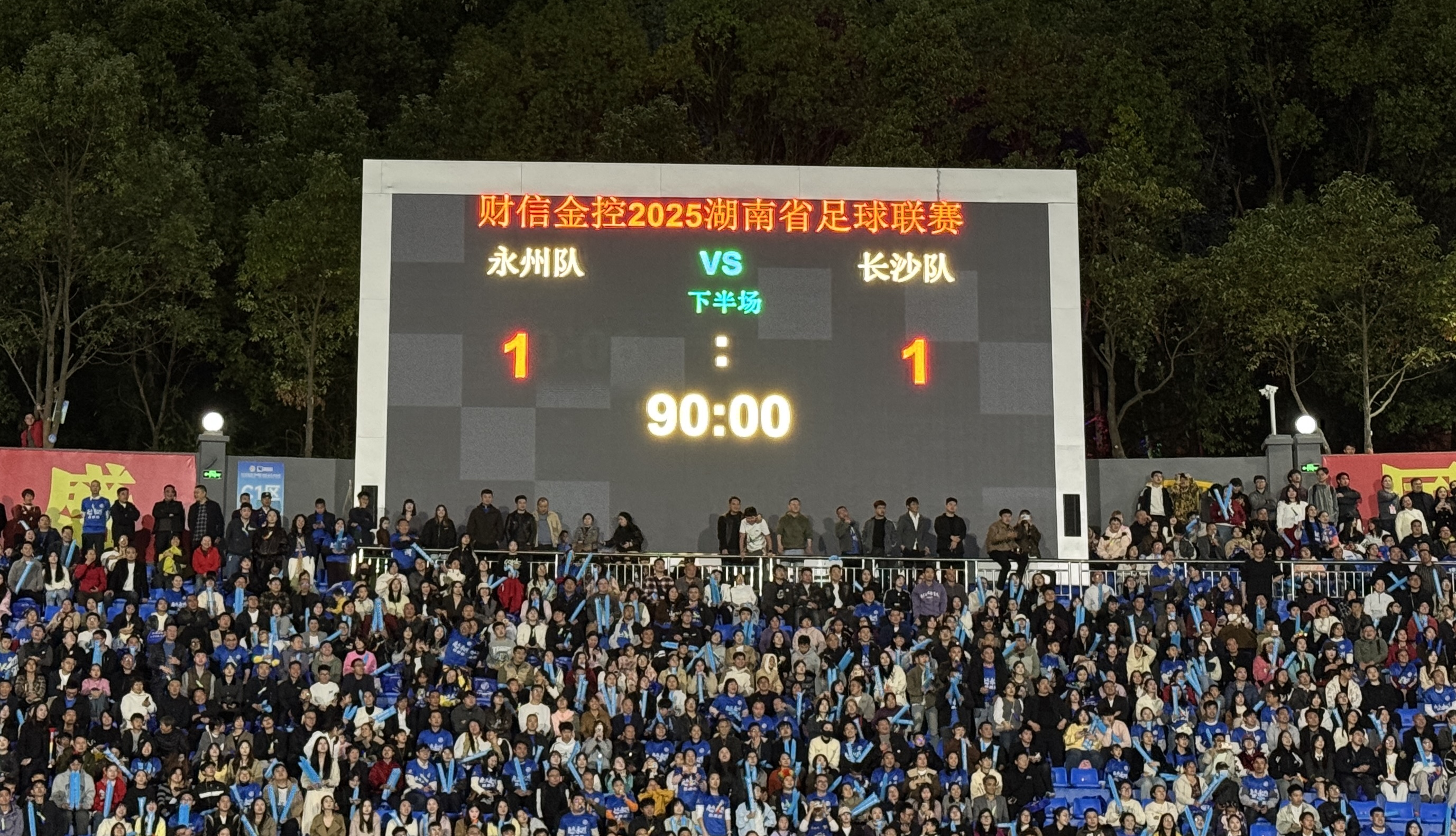 今日永州訊(全媒體記者 陳小波 袁志圣 郭磊 胡宇迪 文佳星)10月26日晚,2025年湖南省足球聯賽“湘超”第七輪永州隊坐鎮主場迎戰長沙隊。經過激烈角逐,主場作戰的永州隊1:1戰平長沙隊,打破了長沙隊不失球的“金身”。