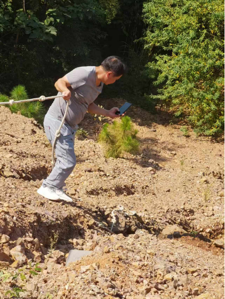 天堂管理所負責人李永秋拉結繩到邊坡下方查明情況
