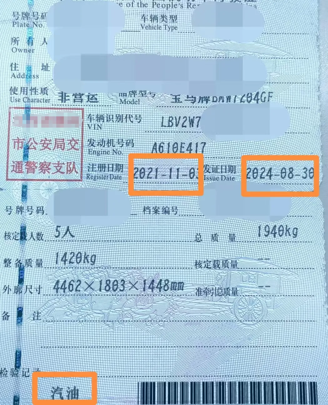 燃料為汽油的、注冊(cè)登記日期應(yīng)在2011年6月30日前,燃料為柴油的、注冊(cè)登記日期應(yīng)在2013年6月30日前,發(fā)證日期均為2024年7月25日前。