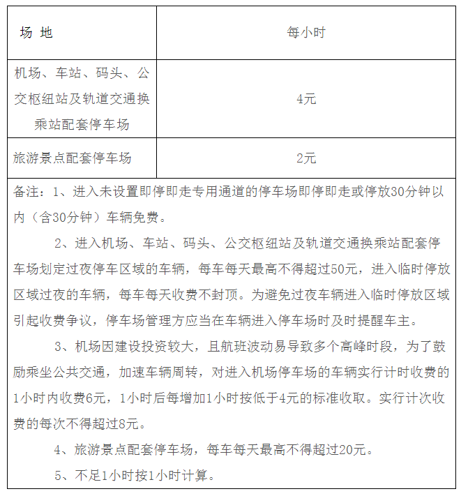 5、機場、車站、碼頭、公交樞紐站及軌道交通換乘站、旅游景點配套停車場機動車停放服務最高收費標準