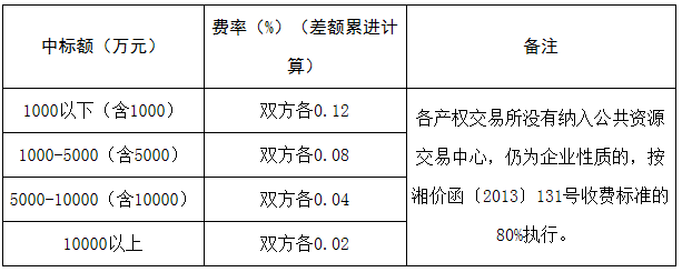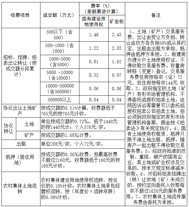 (一)為地(礦)產交易(包括招標、拍賣、掛牌、協議方式轉讓)提供進場或網上交易服務時,執行下列收費標準: