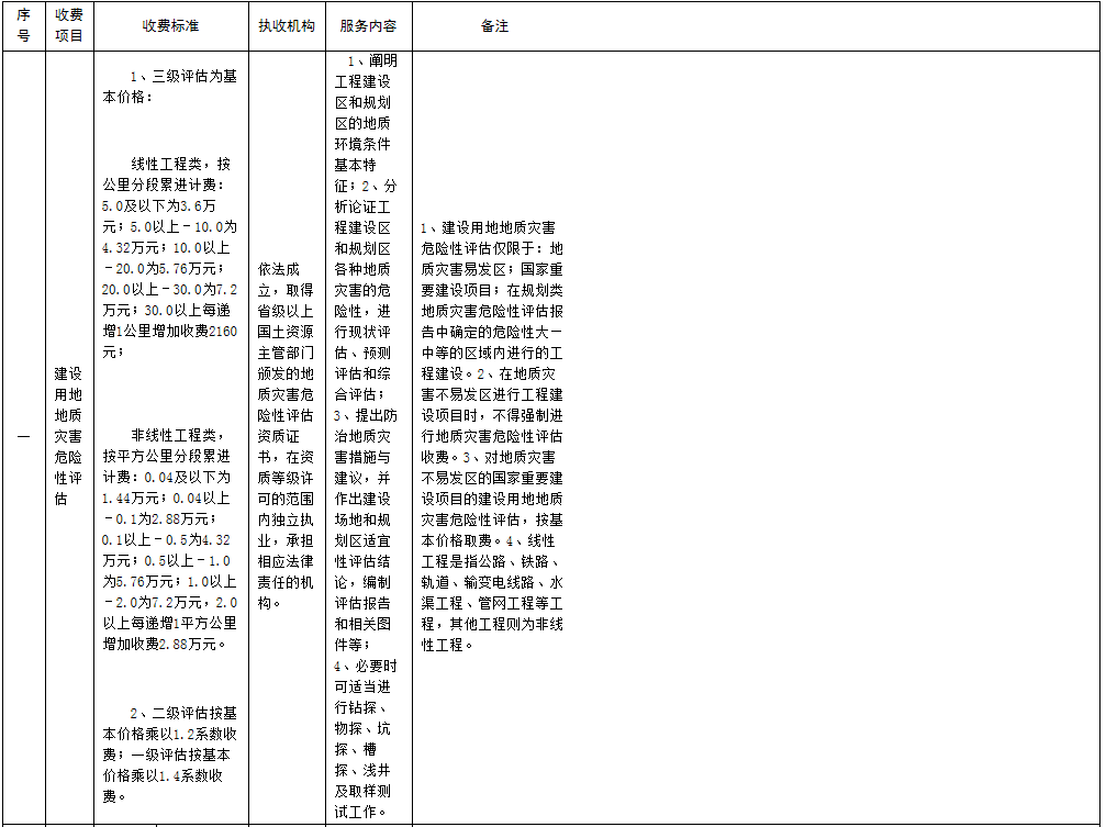 一、城鄉規劃信息技術服務費降低20%后的各項具體收費標準如下: