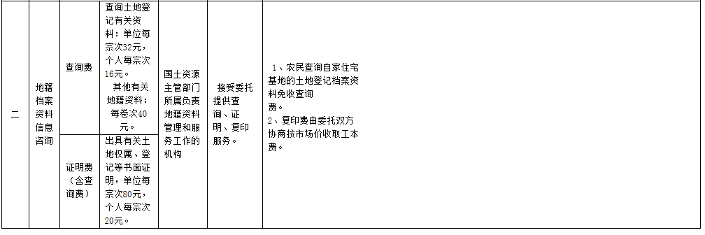 六、國土資源系統服務性收費降低20%后的各項具體收費標準如下: