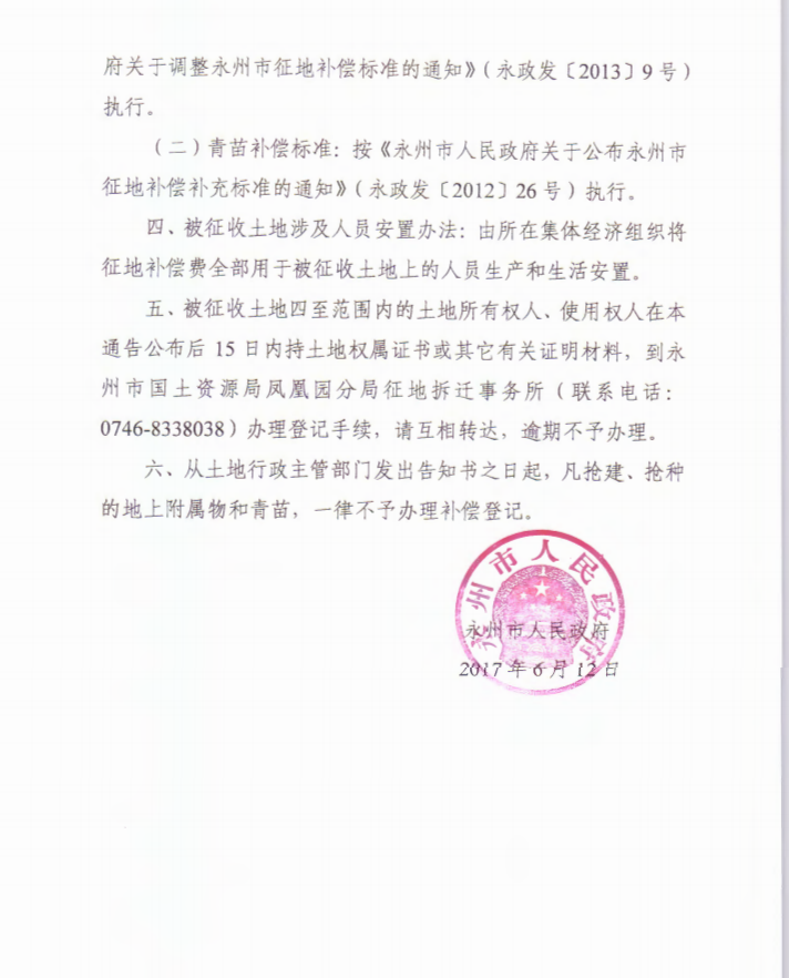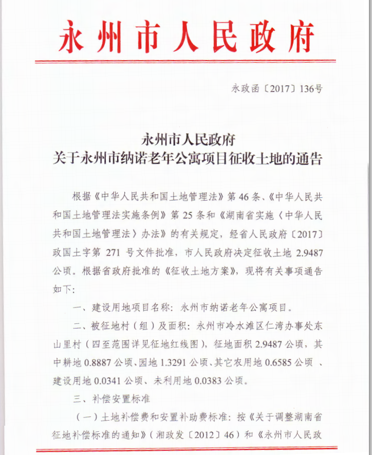 永州市人民政府關于永州市納諾老年公寓項目征收土地的通告