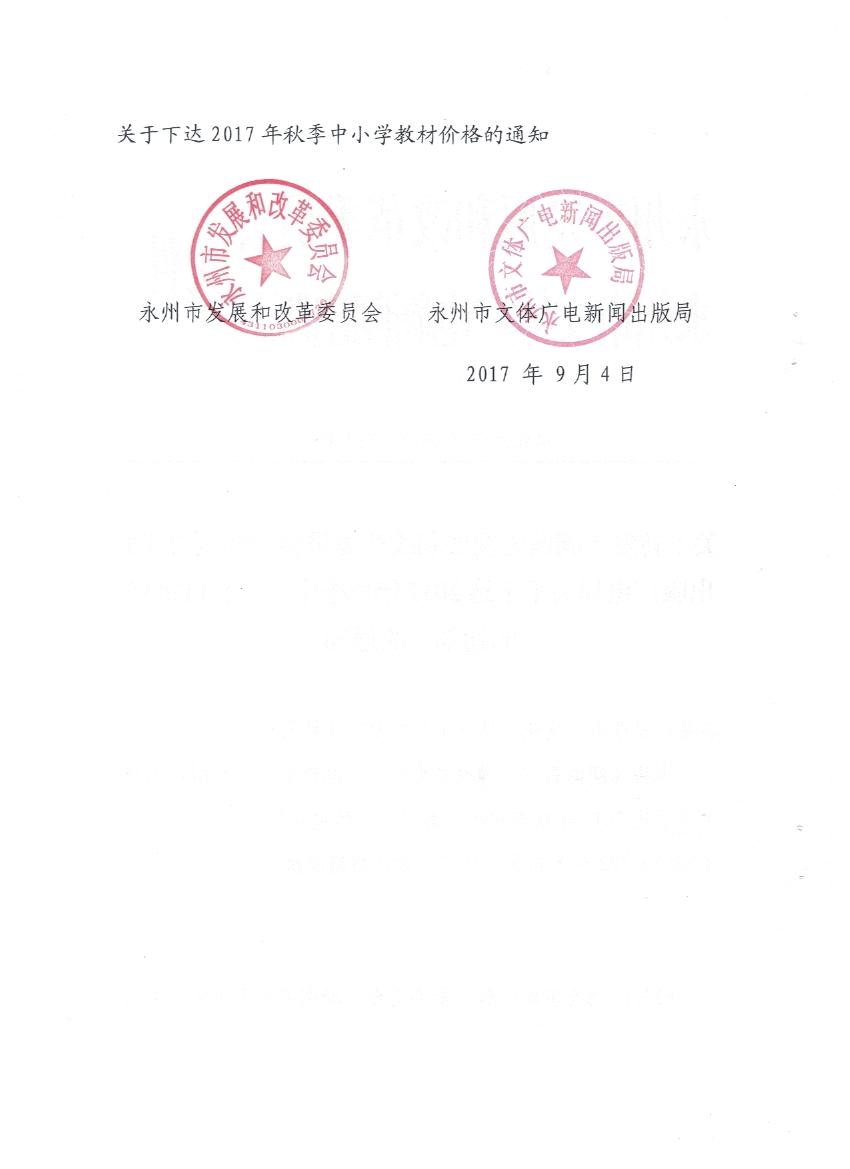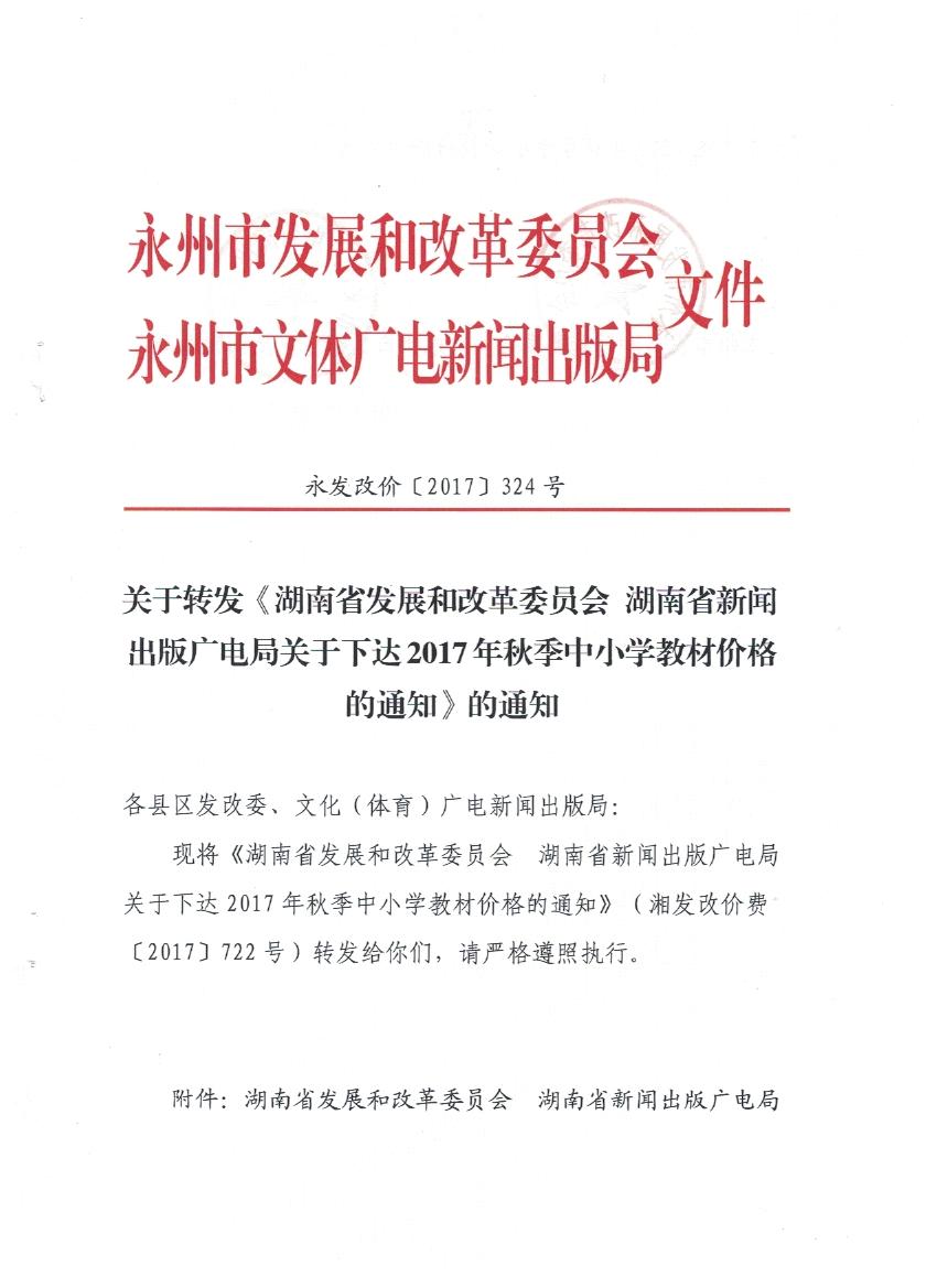 關于轉發《湖南省發展和改革委員會 湖南省新聞出版廣電局關于下達2017年秋季中小學教材價格的通知》的通知