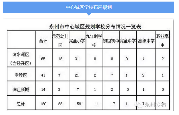 至2020年,永州市中心城區(qū)共規(guī)劃學(xué)校120所,其中:示范幼兒園22所、完全小學(xué)60所、九年制學(xué)校11所、初級中學(xué)17所、完全中學(xué)1所,高級中學(xué)7所、職業(yè)高中3所。