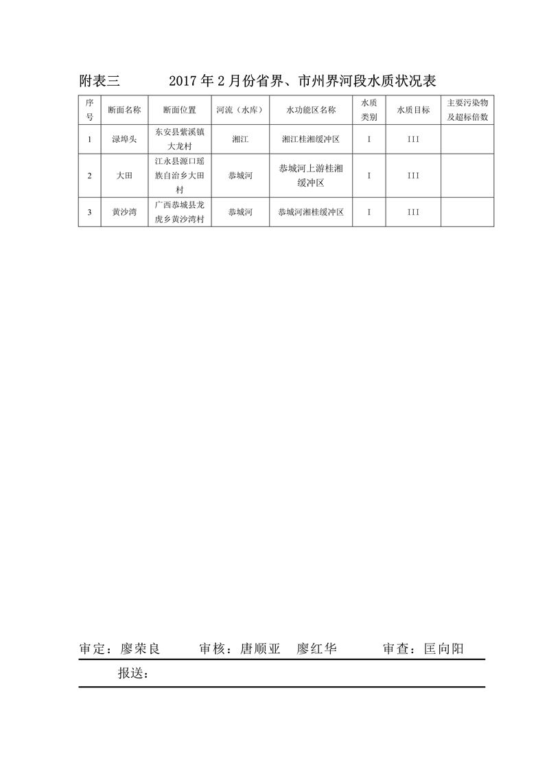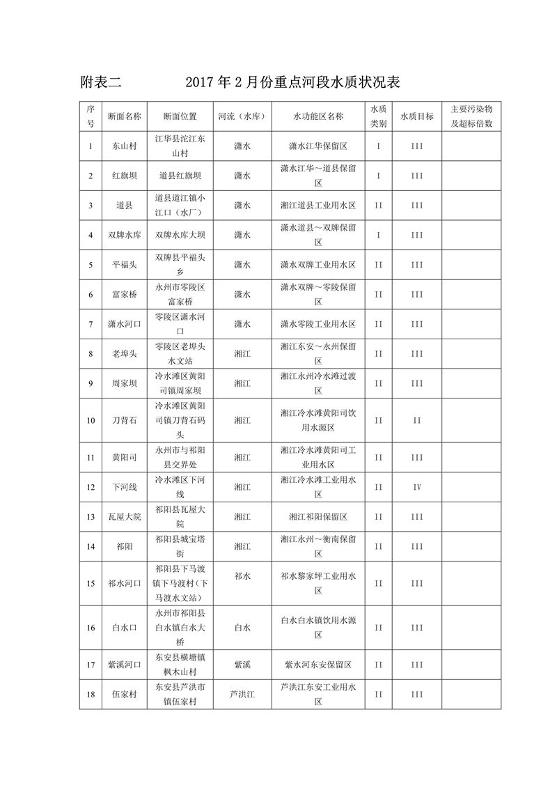 2017年2月永州市水資源質量狀況通報