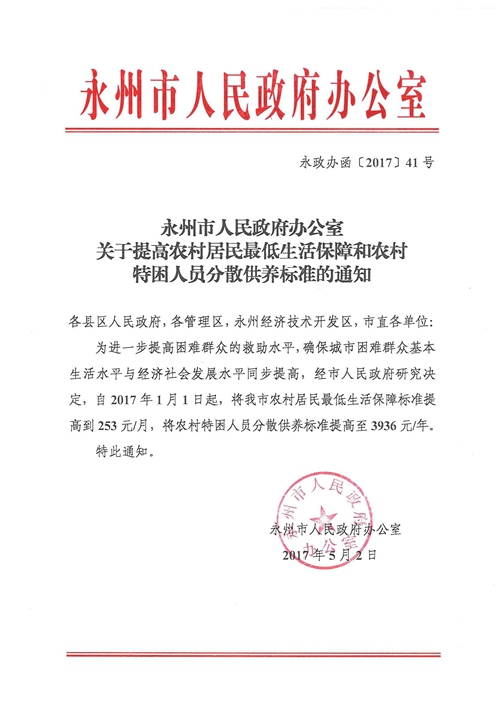市政府辦關于提高農村居民最低生活保障標準和農村特困人員分散供養標準的通知